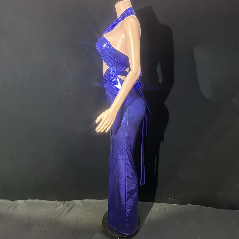 Purple Neck Slim Temperament Seaside Vacation Backless Dress Star Red Carpet Catwalk Singer Music Festival Mini Vestido Sexy Hot