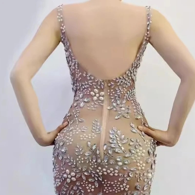 Sexy Female Singer Costume Nightclub Bar Female Singer Full Diamond Tiara Mesh Feather Plum Blossom Diamond Skirt Abiti Da Festa